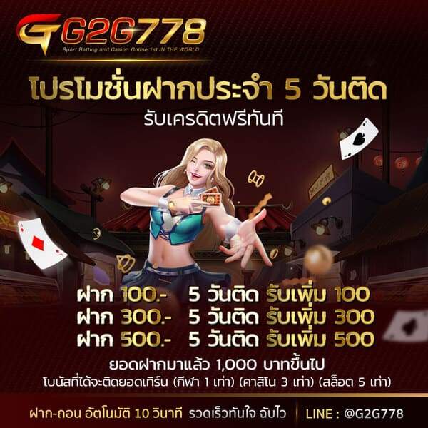 ด้วยความมุ่งมั่นในการให้บริการที่มีคุณภาพG2G778จึงกลายเป็นตัวเลือกอันดับต้น ๆ ของผู้ที่มองหาคาสิโนออนไลน์ที่เชื่อถือได้และตอบโจทย์ทุกความต้องการของนักพนันยุคใหม่